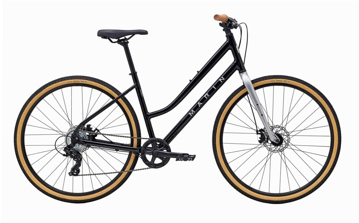 Our Series 1 aluminum frame is lightweight and responsive, and comes decked out with plenty of rack and fender mounts to suit your setup. There’s a Shimano 7-speed drivetrain, Vee Tire tires, Clark’s mechanical disc brakes and plenty of reliable Marin components.